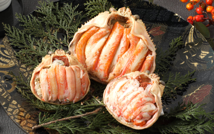 オスの越前かにの肉厚で繊細な甘みのカニ身、メスのせいこがにの赤く濃厚な内子、甲乙つけがたい両方の美味を食べたい! という欲張りな方にお得なセットをおすすめします